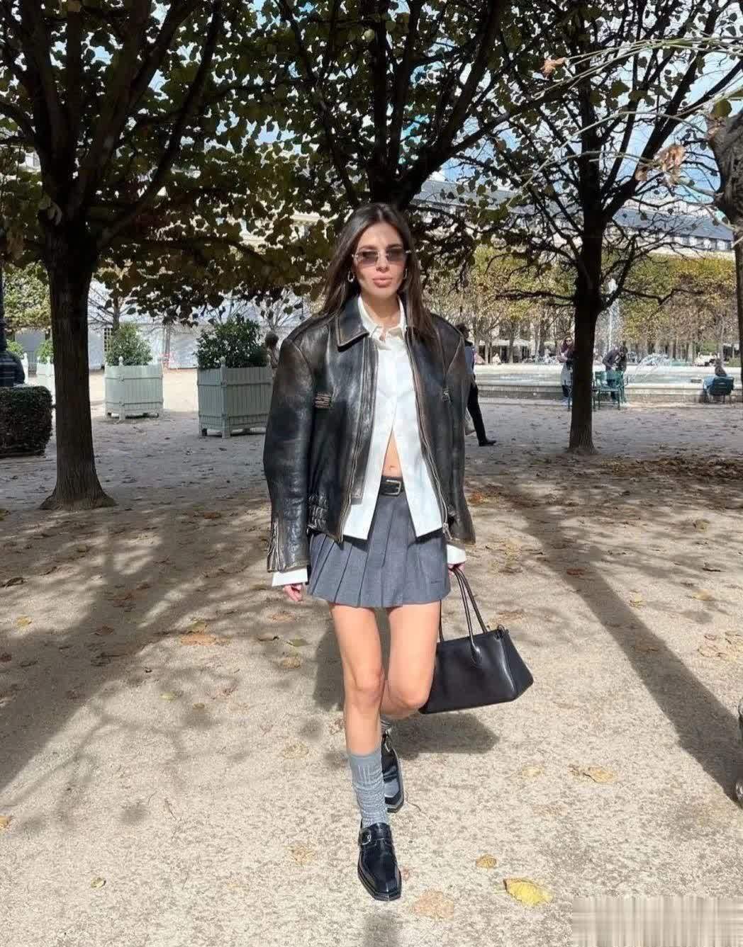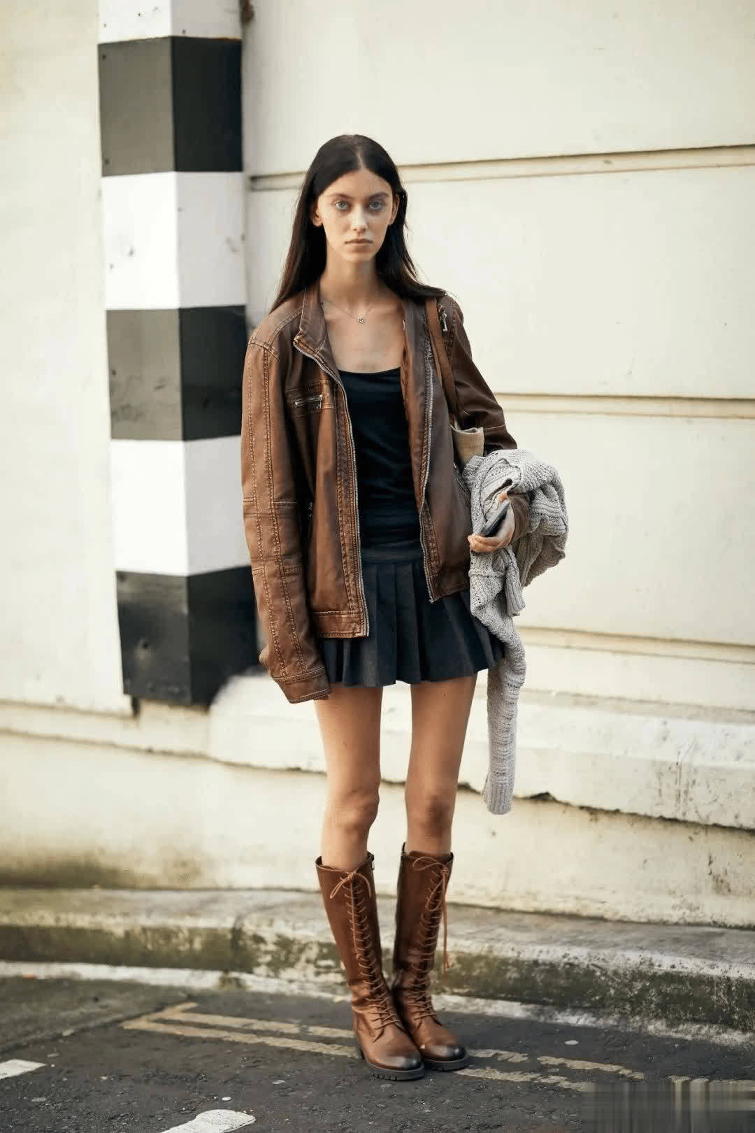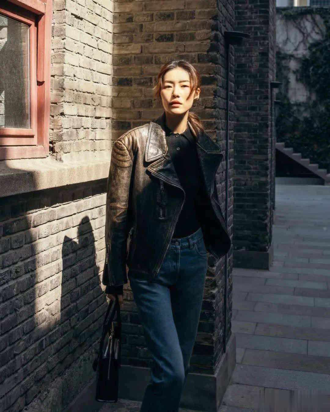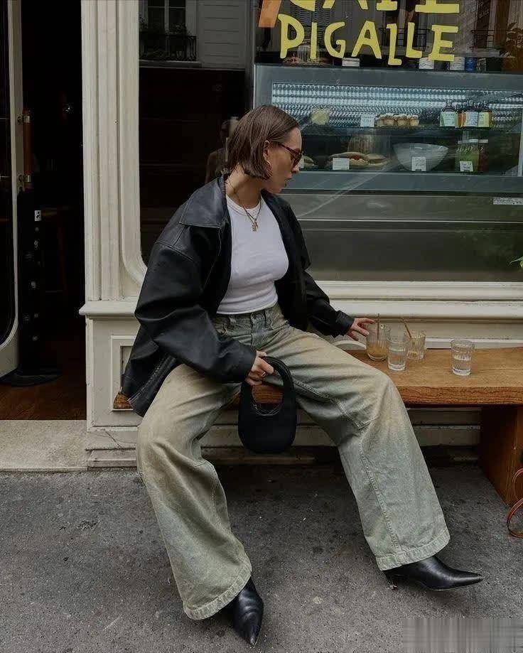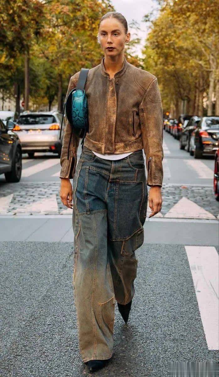 若欲另辟蹊径,不妨尝试皮衣与牛仔的叠穿搭配,更显小众有态度。
