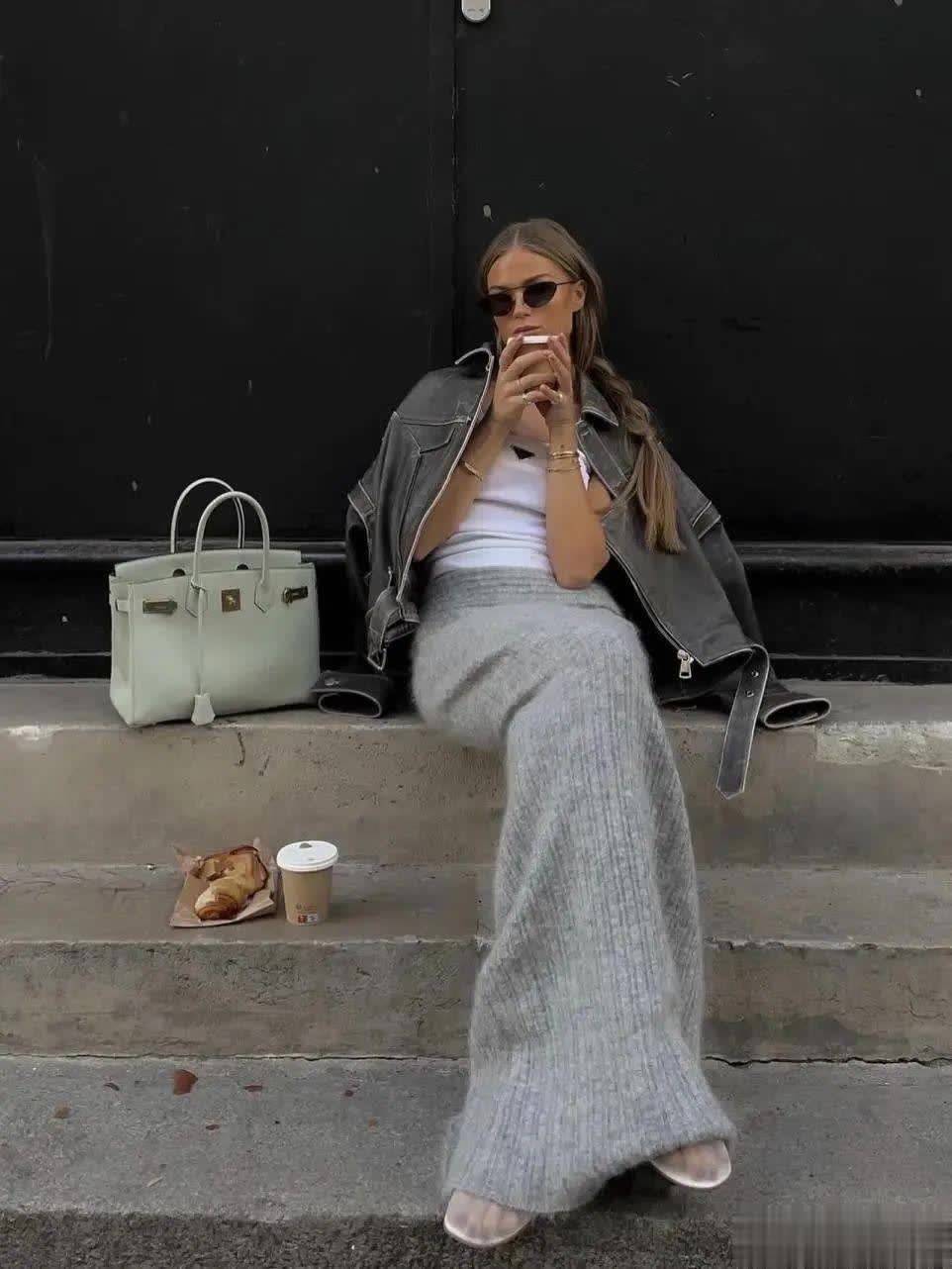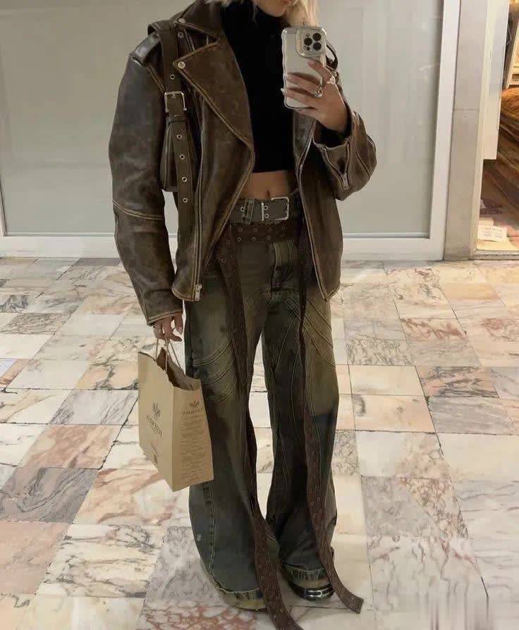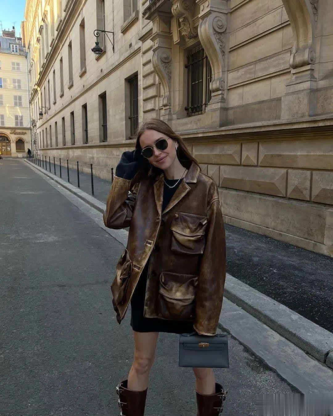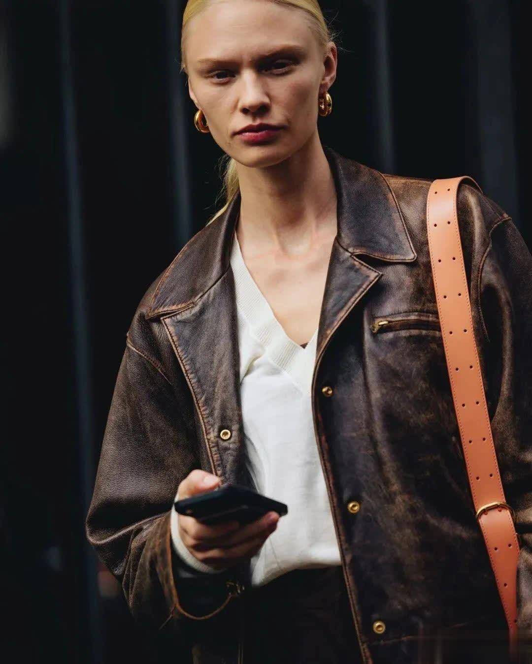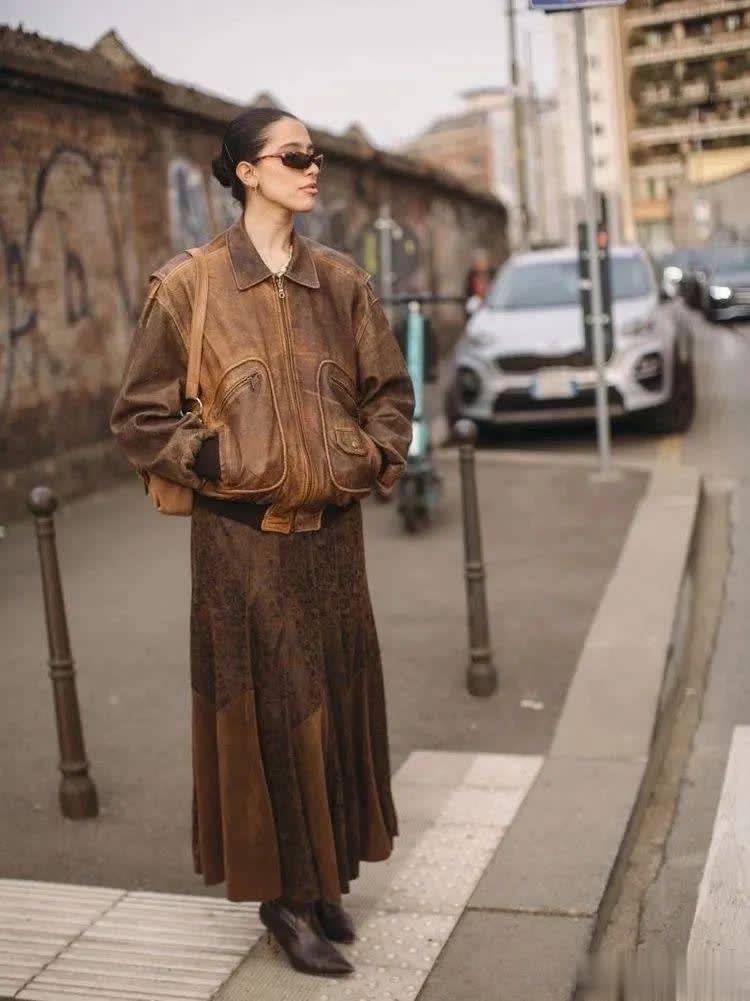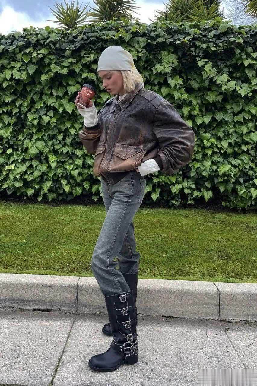 若欲另辟蹊径,不妨尝试皮衣与牛仔的叠穿搭配,更显小众有态度。