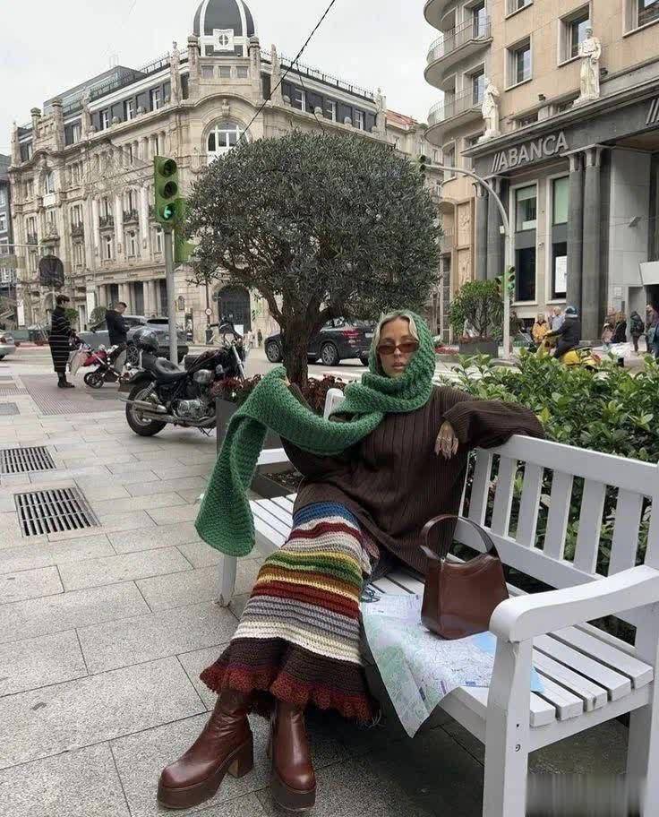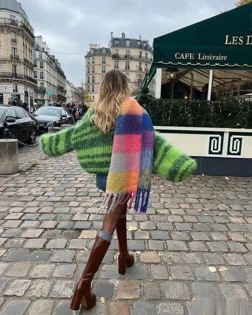 彩色毛衣,粗糙的针织表面,奶奶辈的怀旧配色,共同诠释了一种打破常规的时髦感。