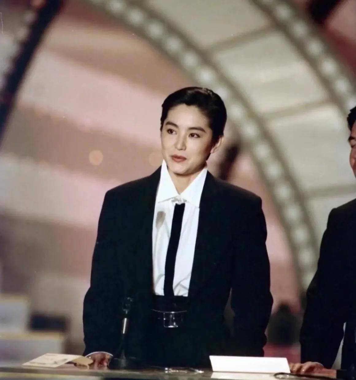的确,林青霞这套西装打扮就完美诠释了这句话。在《刀马旦》中,她一头利落大背头搭配笔挺西装的造型,将东方女性的柔美与西装的硬朗完美融合,创造了经典的"西装杀"造型。